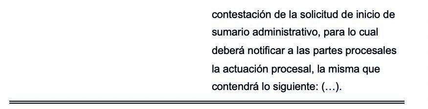 vo con el auto de llamamiento a sumario administrativo, un extracto dice: “1.- De conformidad con el artículo 23 de la Norma Técnica para la Sustanciación de Sumarios Administrativos que fue sustituido mediante reforma del Acuerdo Ministerial Nro. MDT-2019-081 de abril de 2019 publicado en el Registro Oficial Suplemento Nro. 463, se dispone lo siguiente: (…)”