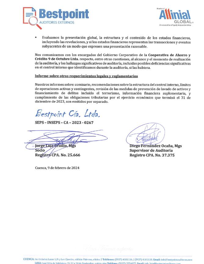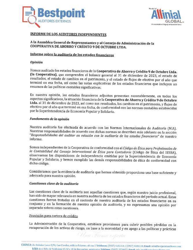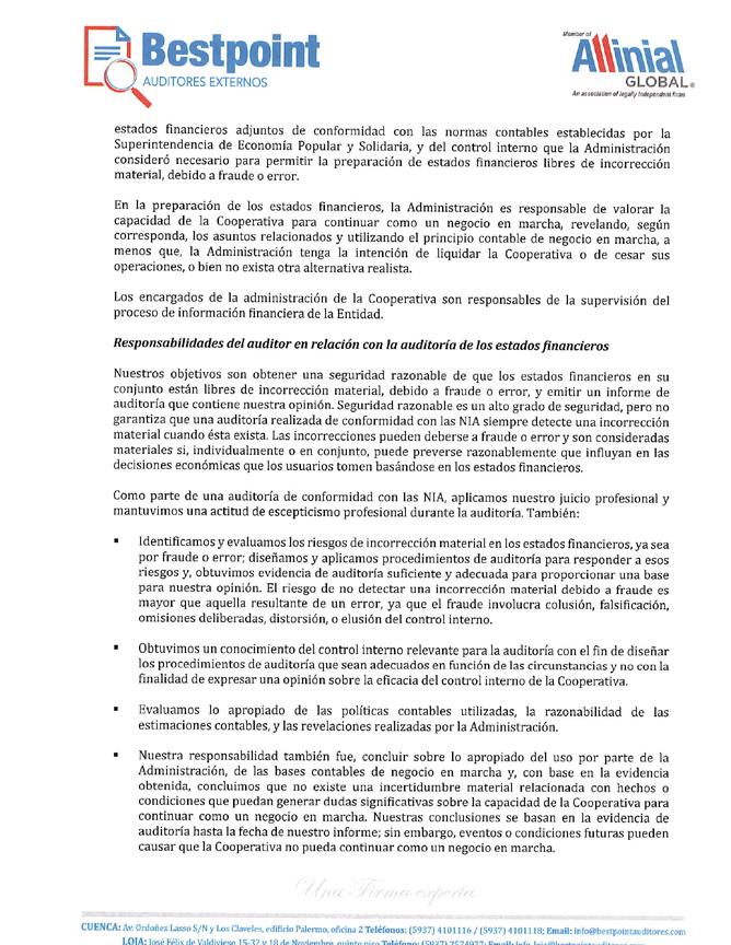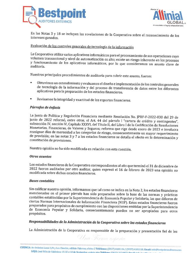 Los estados financieros del año 2023 están a disposición de los accionistas en la oficina de la empresa.