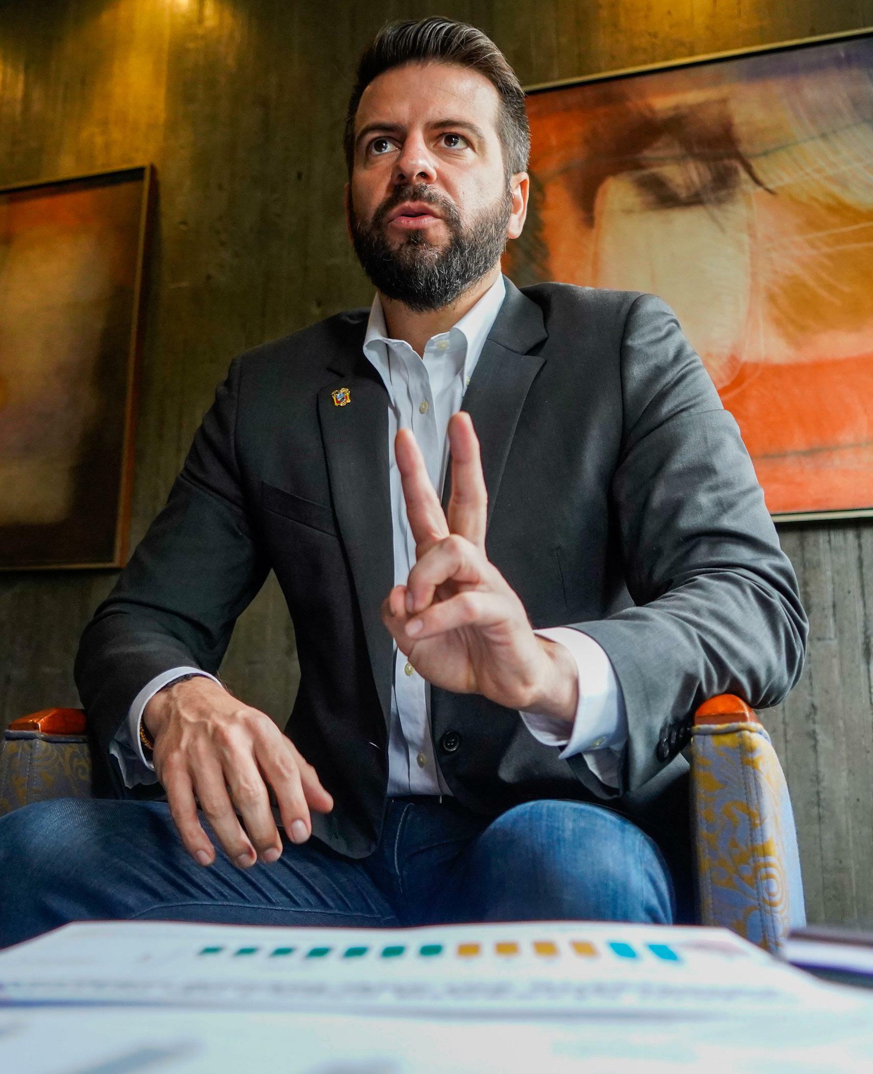 El ministro de Economía, Pablo Arosemena , du rante un conversatorio con medios de comunicación, defendió que los $1.871 mi llones presupuestados para obra pública en 2023 es un monto importante frente a unas cuentas estatales defi citarias.