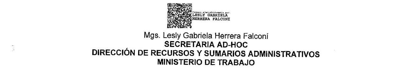 MINISTERIO DE TRABAJO DEL ECUADOR DIRECCIÓN DE RECURSOS Y SUMARIOS ADMINISTRATIVOS