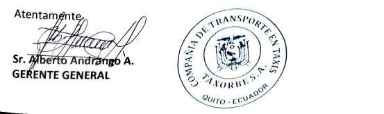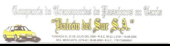 De conformidad con los Estatutos Sociales de COTABALSUR COMPAÑIA DE TAXIS BALCON DEL SUR S.A., y la Ley de Compañía en los Art. 119, 233 y 236, se CONVOCA a los Señores Accionistas a Junta General Ordinaria de Accionistas que se realizara el día LUNES 24 de ABRIL del , a las 10H00 am., en la oficina de la Compañía ubicada en la calle García Moreno N° 494 y Eloy Alfaro, Parroquia Tambillo, Cantón Mejía, Provincia de Pichincha, para tratar el siguiente orden del día: