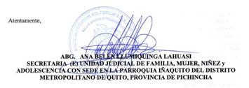 UNIDAD JUDICIAL DE FAMILIA, MUJER NIÑEZ Y ADOLESCENCIA DEL CANTON QUITO, PROVINCIA DE PICHINCHA CON SEDE EN LA PARROQUIA DE IÑAQUITO.
