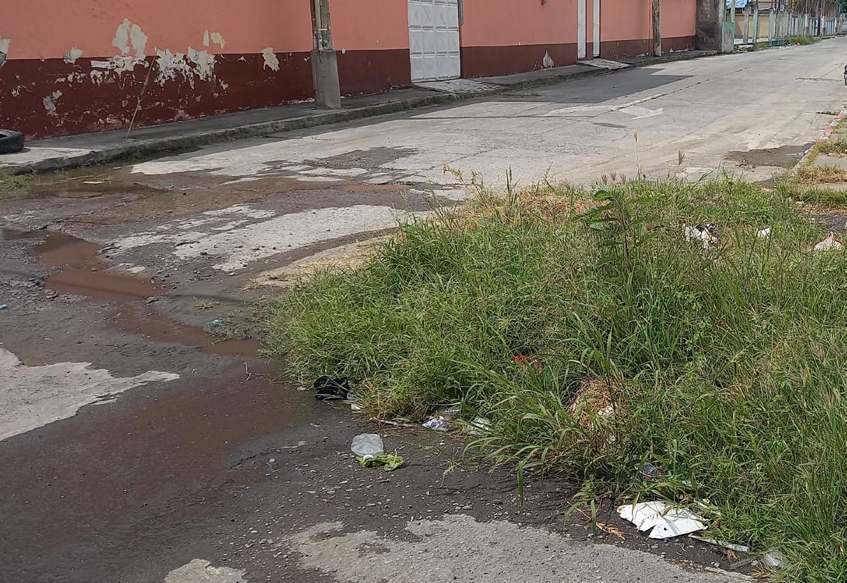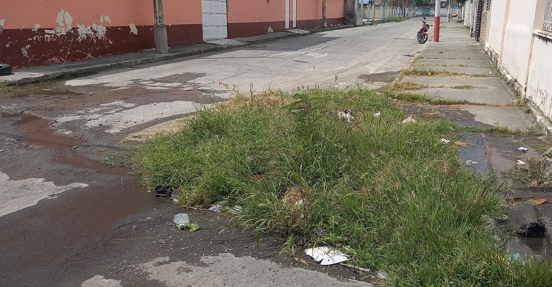que baja por este sector, más las piedras, tierra y demás material que ésta arrastra y que baja a consecuencia de las fugas de agua en la esquina de la calle 24 de mayo Avenida colón en el mismo sector de nuevos horizontes se ha formado una isla de material y de maleza.