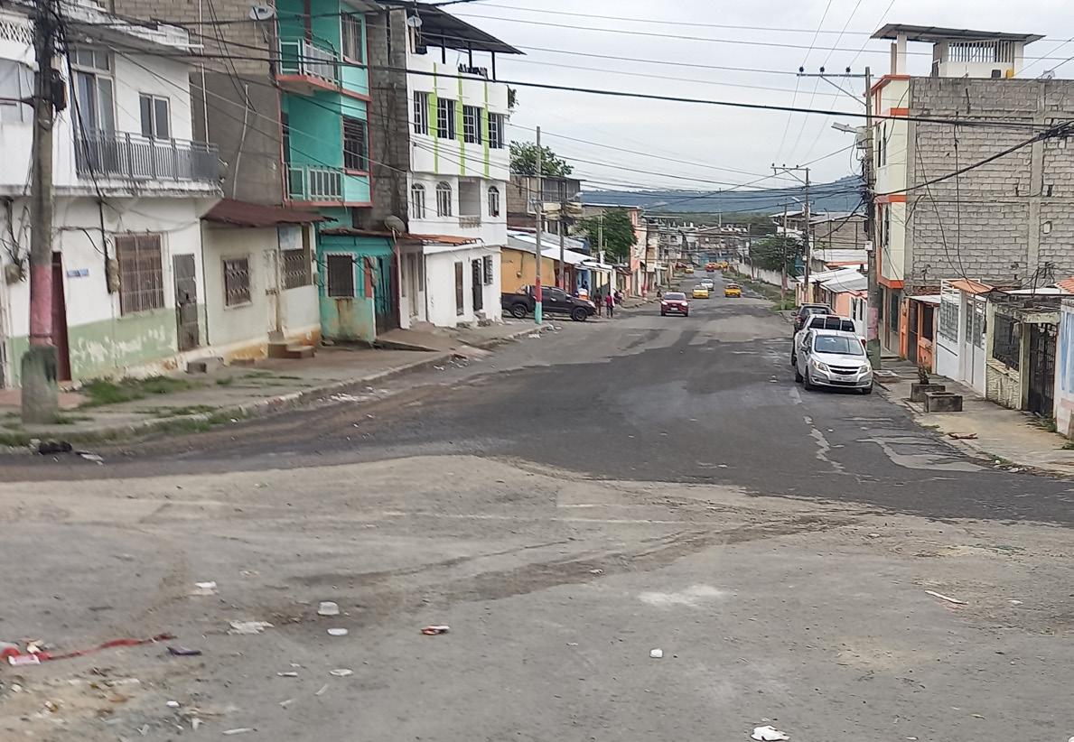 En el sector de Nuevos Horizontes a lo largo de la calle 24 de mayo desde la calle Velasco Ibarra hasta llegar a la vía principal de la calle Antonio José de Sucre, cada vez que llega el agua en este sector esta calle antes mencionada pasa todo el día llena de agua.