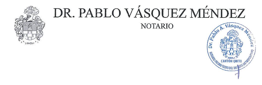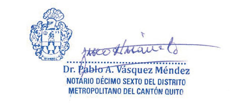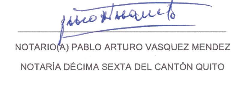 documentos por el notario, procede a la revisión de los mismos, y de estar en orden y completa la documentación, procede a la inscripción, para lo cual ingresa los datos al Sistema Informático Notarial, se imprime el acta que contiene la razón de inscripción, que debe ser firmada por el peticionario y el notario, conforme la disposición notificada el 26 de septiembre de 2016 por parte del Doctor Hernán Calisto M., Director Provincial del Consejo de la Judicatura de Pichincha, en la que se puso en su conocimiento las directrices de cumplimiento obligatorio para la Gestión del Sistema Notarial.