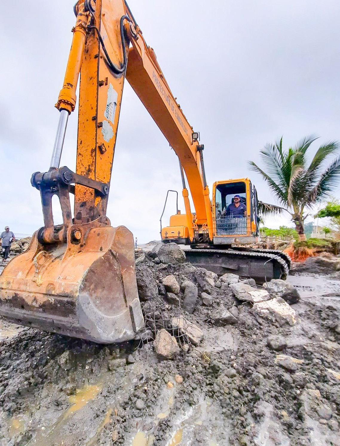 En Pegue, comunidad de la parroquia Camarones del cantón Esmeraldas, maquinaria y equipo técnico fue movilizado para ejecutar la limpieza y reconformación del muro de protección afectado por fuertes oleajes que, lamentablemente, generan un riesgo para la comunidad, como lo expresó Alfredo Carranza, habitante del recinto.