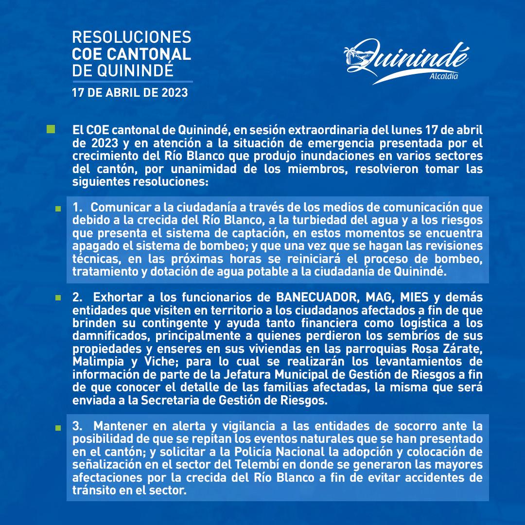 Una vez concluida la reunión, por unanimidad los miembros del COE cantonal adoptaron las siguientes resoluciones: