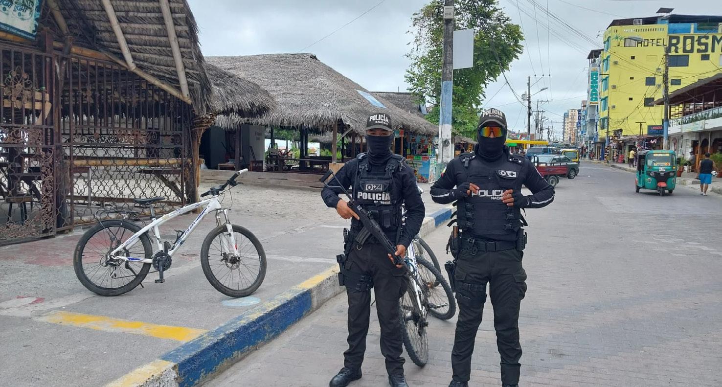 SEGURIDAD. Los principales centros turísticos de Esmeraldas fueron resguardados por la Policía Nacional.Más de 39 homicidios, cuatro secuestros y atentados en unidades educativas son el resultado preliminar del primer mes en estado de excepción en Esmeraldas.