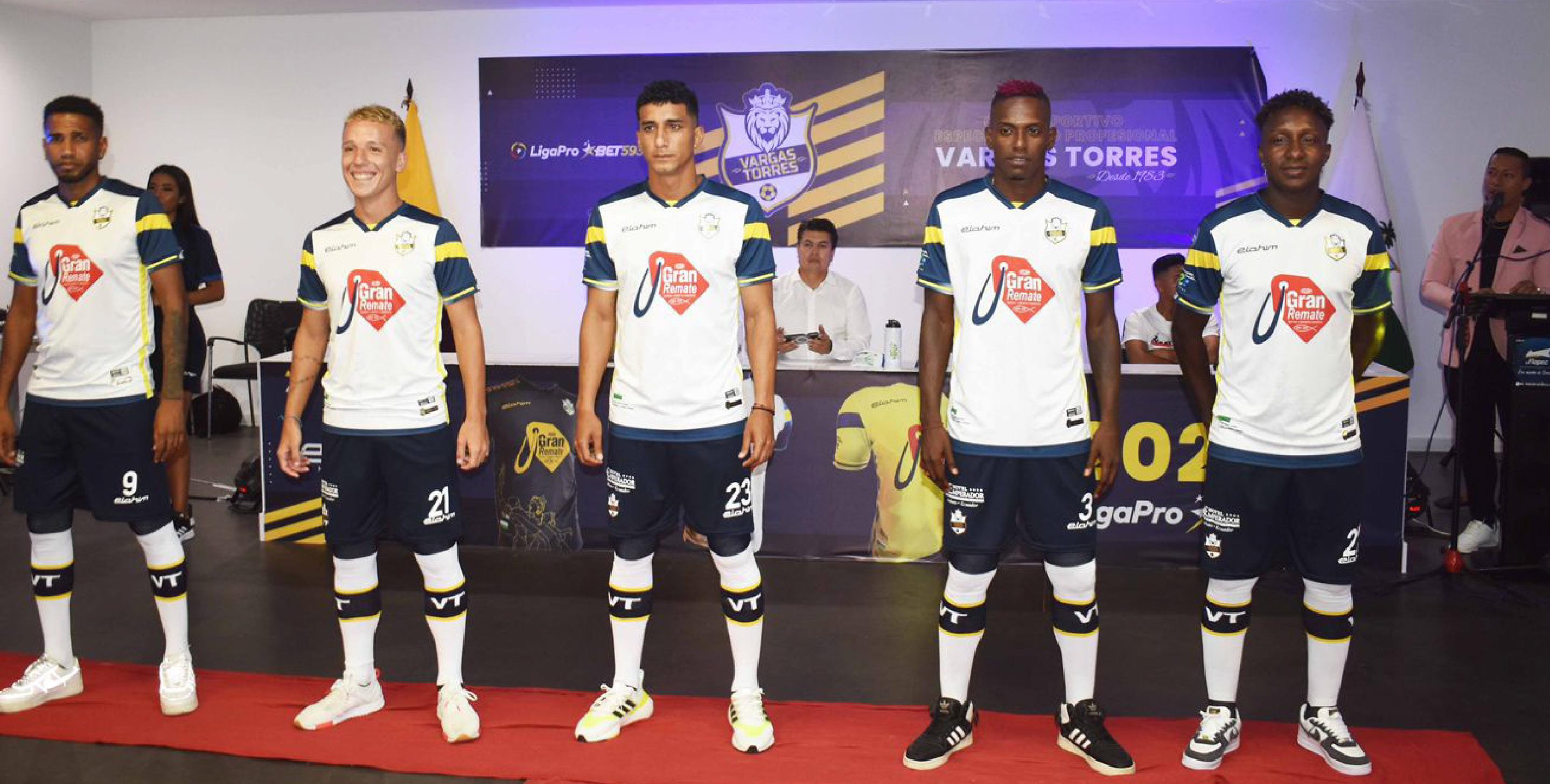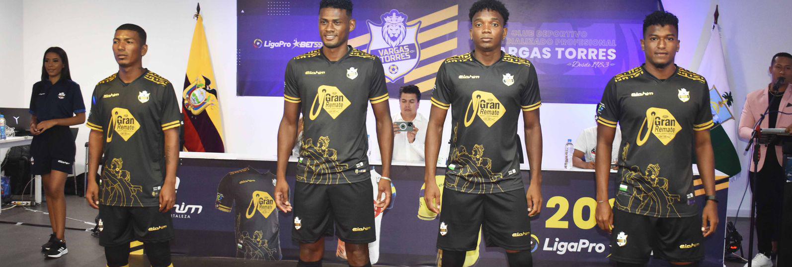 de la serie B, y el conjunto amarillo y el conjunto negro como uniformes alternos que utilizara la plantilla del equipo Vargas Torres en sus próximos encuentros. En el uniforme negro existen varios detalles de nuestra cultura esmeraldeña, como la silueta de una pareja bailando marimba, de la misma manera la bandera banco y verde de