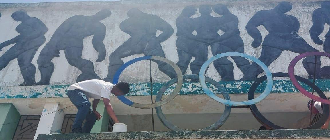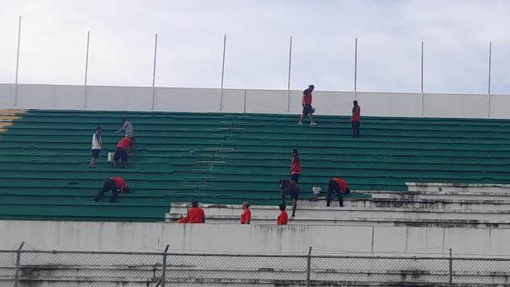 a pintar todo el graderío para que el estadio valla cambiando su rostro y de esa manera poder tener listo el estadio para que la fisión pueda disfrutar de los encuentros deportivos y verle jugar en su propia casa a el equipo de esmeraldas el Vargas Torres.