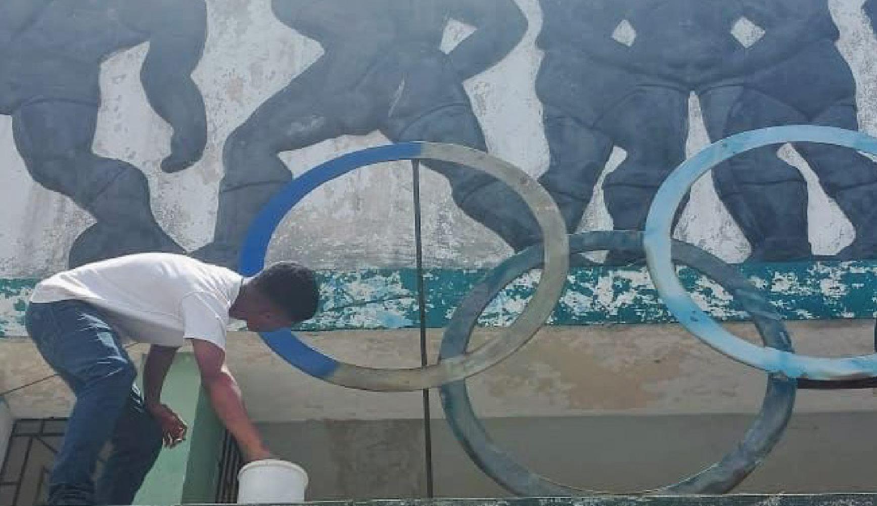 El proyecto Nacional Mustang a cargo de Washington Alcívar también colaboran con trabajos de soldadura y pintura de partes metálicas de las puertas y pinturas del logo del estadio en coordinación con el