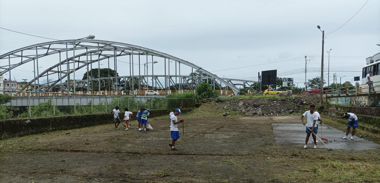 El graderío que queda ubicado en la calle Salinas, fue limpiada y pintada como parte de la colaboración por miembros del Cuerpo de Bomberos Esmeraldas en gestión del técnico Luis Tenorio.