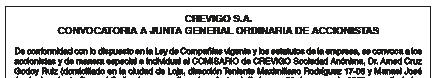 De conformidad con lo establecido en la Ley de Compañías, en el Reglamento sobre Juntas Generales, expedido por la Superintendencia de Compañías y en el Estatuto Social de SERVICIO ESPIRITUAL SERVIES S. A., se convoca a los señores Accionistas a la Junta General Ordinaria que tendrá lugar el martes 28 de marzo del 2023, a las 17 horas, en la Avenida de los Granados y de las Hiedras, Edificio Maresa Center, cuarto piso, de la ciudad de Quito-Ecuador.