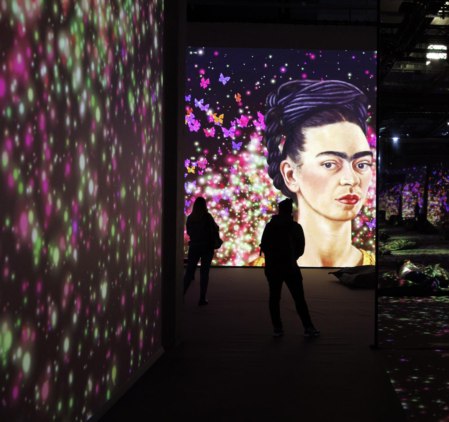 Un grupo de personas visita la exposición inmersiva ‘Vida Frida Khalo’ en Lausana, Suiza. La muestra combina proyecciones audiovisuales con narraciones en primera persona, realizadas por la pintora mexicana, fallecida en 1954. La exhibición estará abierta al público del 17 de diciembre de 2022 al 19 de marzo de 2023.- EFE