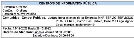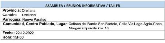 El documento sujeto de la presente Junta se encuentra a disposición de los accionistas para la revisión en la oficina de la compañía desde el día miércoles 21 de diciembre del 2022, hasta un día antes de la Junta General, desde las 08:00am. Hasta las 14:00pm.