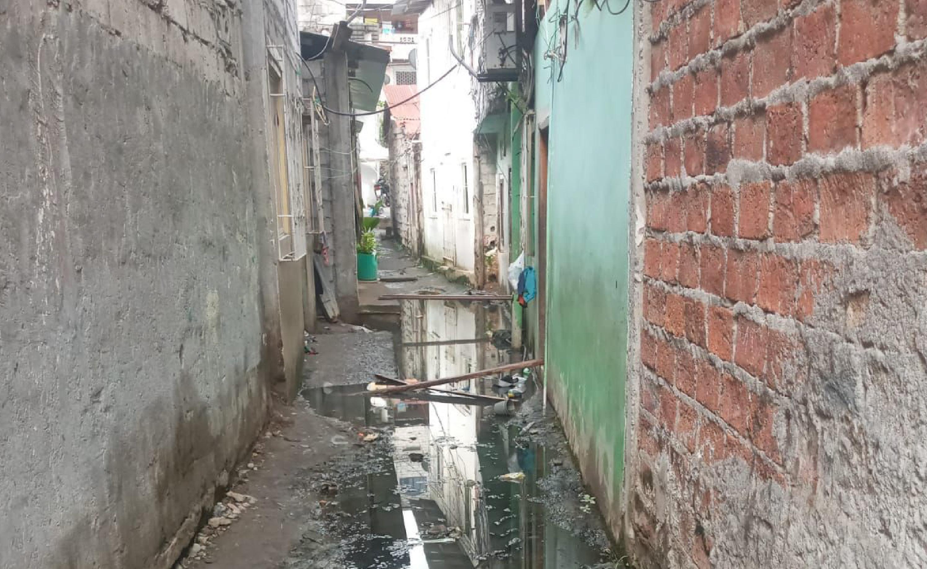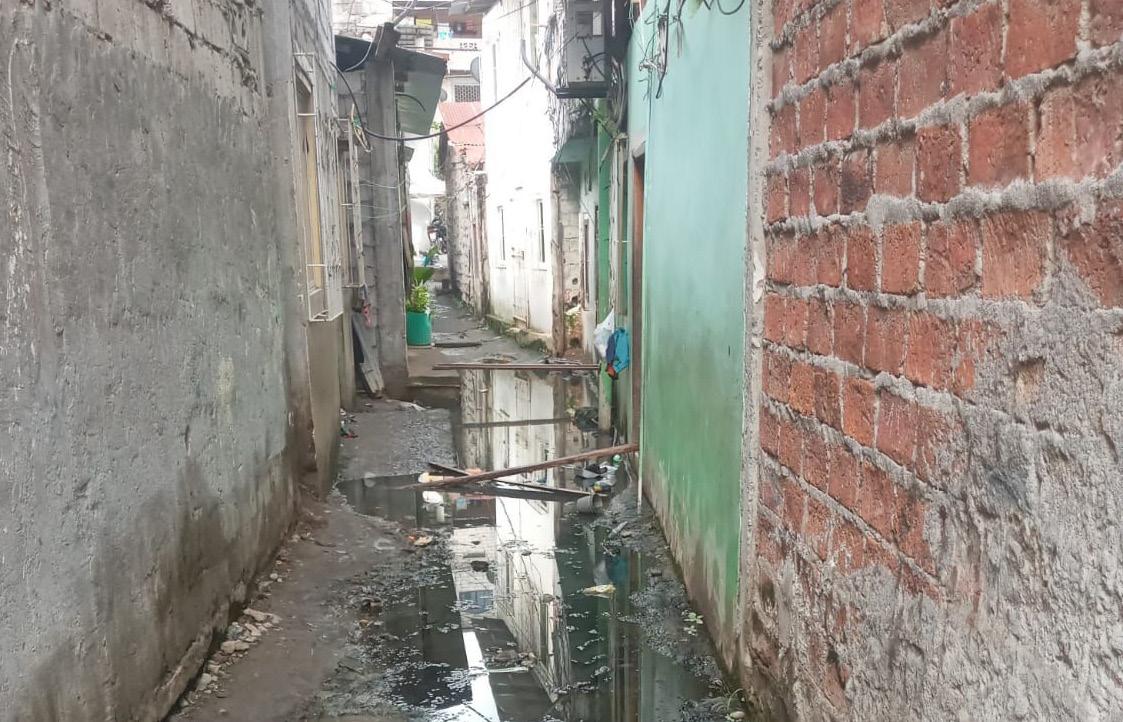 A la altura del callejón del Barrio 5 de Junio, prolongación de la calle Lavayen, zona de la ribera del río Esmeraldas, desde hace meses deben lidiar con el colapso del sistema de alcantarillado, aún en época seca muestra dificultades.