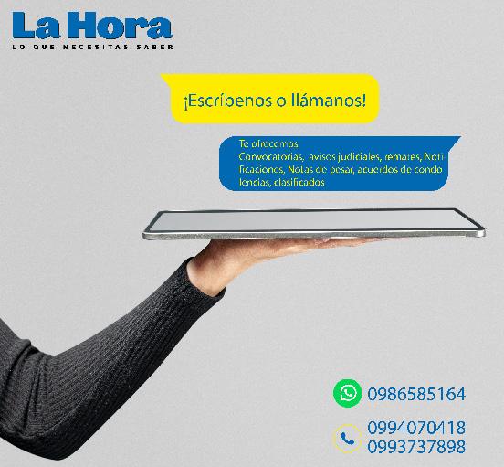 Editor General: Jean Cano Redacción: editorgeneral@lahora.com.ec Publicidad: publicidad@lahora.com.ec Año: XL No. 13577
