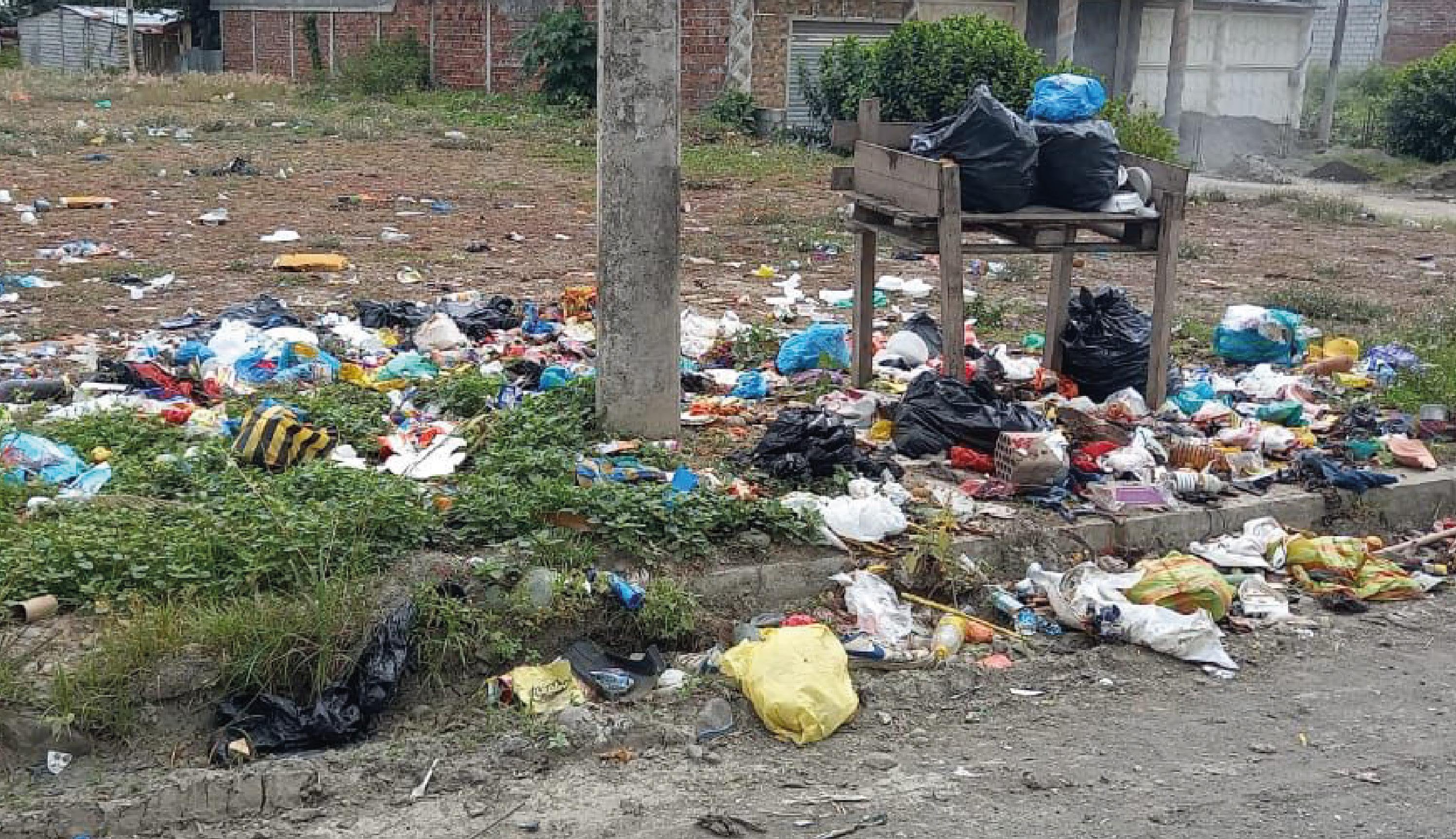 Es frecuente observar desechos sólidos regados en esquinas y vías de los barrios y parroquias de Esmeraldas, donde las fundas y cerros de basura pasan así por días.