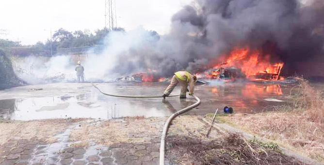 En esta zona de la Base Naval de Esmeraldas se evidenció 3 lanchas obso letas incendiadas produc to de una quema de male za que se salió de control dentro del espacio, lo cual contó con la presencia per sonal de bomberos acudie ron hasta la Base Naval, en donde se estaba producien do un incendio. Utilizando técnicas de sofocación y enfriamiento se controló la emergencia durante el día domingo.