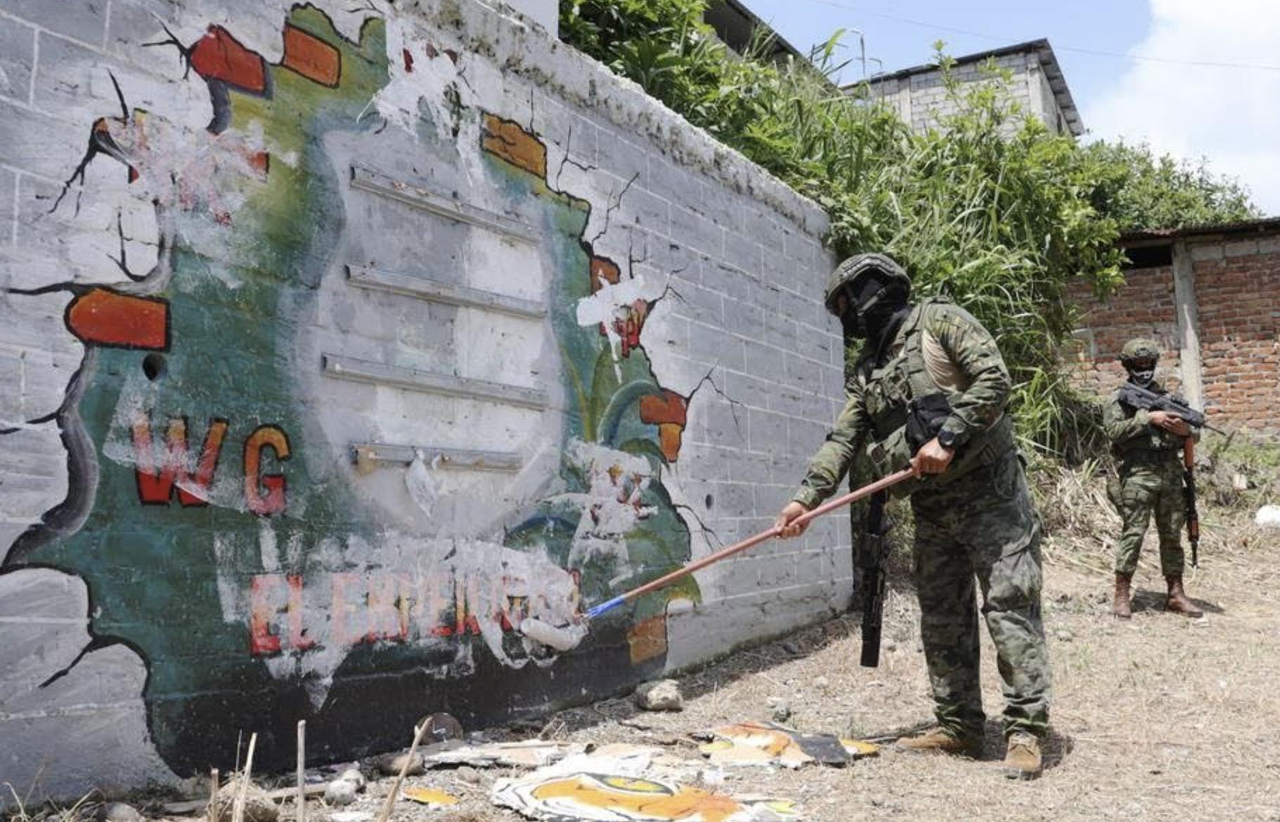 En un operativo militar se ingresó hasta el populoso sector de La Guacharaca uno de los barrios denominado “zona caliente”, se procedió a pintar grafitis y murales de la banda de Los Tiguerones.