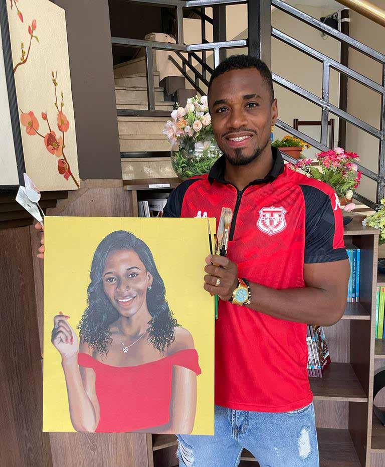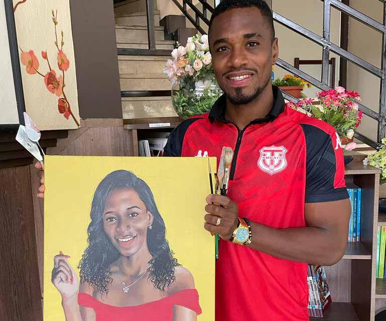 El futbolista esmeraldeño comparte su habilidad dentro del campo de juego con su pasión por el lienzo, los colores y la pintura.