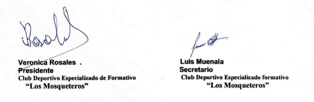 Por dispocición del Presidente del Club Deportivo Especializado Formativo “Los Mosqueteros”, de conformidad con el Art: 38 ,del Estatuto del Club Deportivo Especializado de formativo “Los Mosqueteros”; se convoca a Asamblea General Electiva a los Miembros del Directorio y socios para el día 09 de Septiembre de del 2024 , a las 17:00 H, en la cede del Club, Av Seis de Diciembre y Av Naciones Unidas Estadio Olímpico Atahulapa acceso tres para tratar los siguiente orden del día:
