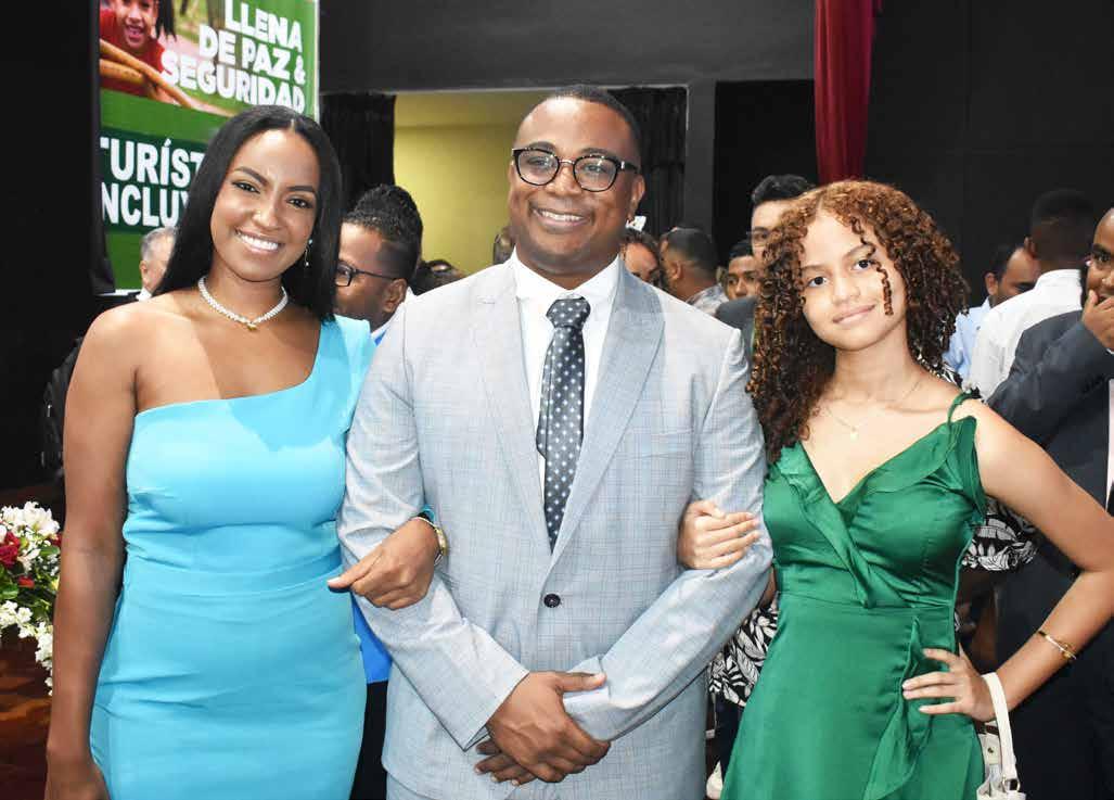 RECUERDOS. Fotografía tomada por diario La Hora el pasado 14 de mayo en el evento de posesión de los concejales y demás autoridades donde el concejal está acompañado de su esposa Sugey Delgado, y de su hija Angeline Olaya.