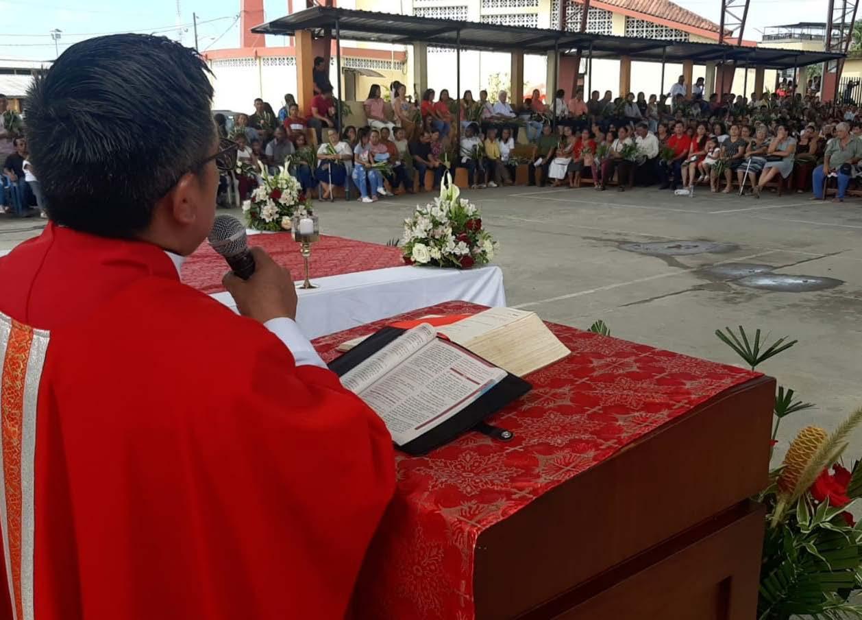 Lo expresó el Padre Víctor Ocaña, líder de la parroquia Sagrado Corazón de Jesús. El fuerte sol de la mañana no impidió que desde barrios urbanos y hasta comunidades rurales, asistieron a la bendición de las palmas, la procesión de Jesús acompañada de los fieles y la celebración de la misa dominical, como demos -