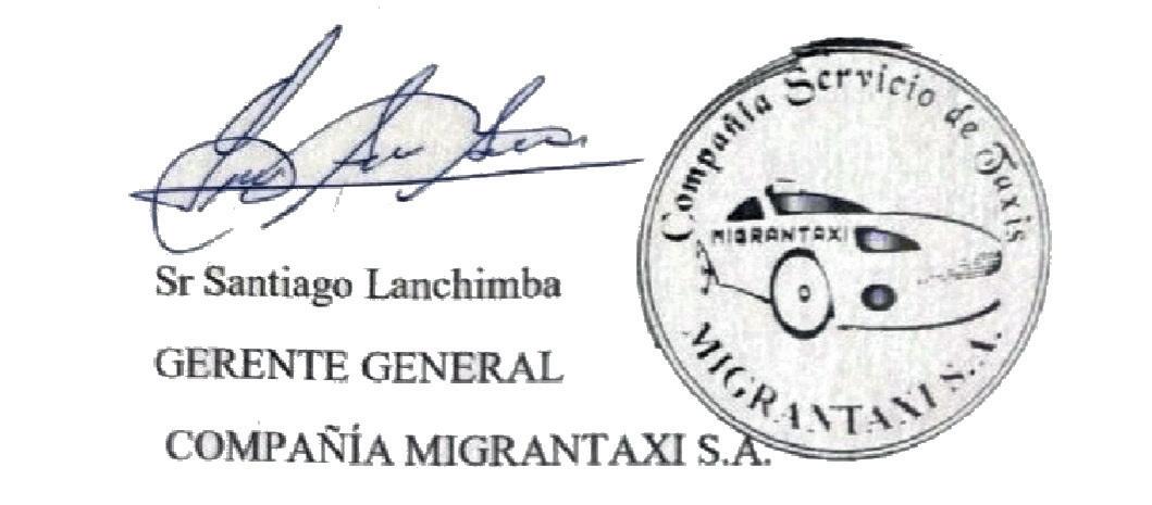 De conformidad a lo dispuesto en los artículos 231,234,236 numerales 2,3,4 de la Ley de Compañías y el Art 43 de la ley de modernización a la ley de compañías se convoca a los señores Accionistas de la compañía SERVICIO DE TAXIS MIGRANTAXI S.A. a la Junta General Ordinaria de Accionistas , que se realizara el Viernes 22 de Marzo del año 2024 a las 14H00 , a realizarse en forma presencial en la SEDE DE LA LIGA BARRIAL AMAGASI DEL INCA ubicada en las Nueces y Canelos junto al Colegio Hontanar para tratar el siguiente orden del día: