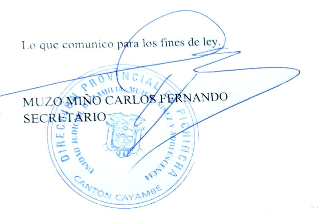 UNIDAD JUDICIAL DE FAMILIA, MUJER, NIÑEZ Y ADOLESCENCIA DEL CANTÓN CAYAMBE DE LA PROVINCIA.