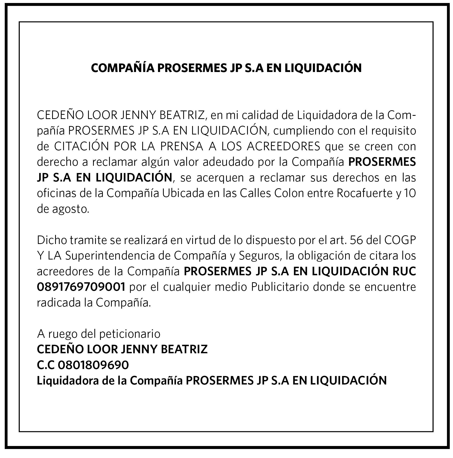 en los artículos 142 y 143 del Código Orgánico General de Procesos (COGEP), por lo que se califica y admite a trámite mediante procedimiento ordinario. 1.- Se ordena la citación de los demandados señores: MABELYN MIOSOTTY QUIÑONEZ CASTILLO y JEREMY ISAAC QUIÑONEZ CASTILLO, quienes tienen su domicilio ubicado en el sector 24 de mayo calle Avenida Universitaria y Chile, antes de llegar al Ministerio de Transporte y obras públicas de esta ciudad de Esmeraldas, en calidad de heredero de la difunta señora CASTILLO QUIÑONEZ JAHAIRA MIOSOTIS con cédula número 0801912569, para la citación de la parte demandada, se adjuntará a la demanda, copia certificada de los documentos adjuntos en la demanda y este auto inicial. - A los herederos desconocidos de la fallecida señora CASTILLO QUIÑONEZ JAHAIRA MIOSOTIS, de conformidad al artículo 58 del Código Orgánico General de Procesos (COGEP) se dispone también la citación a través de uno de los medios de comunicación, para el efecto, antes de la publicación, la parte actora una vez notificada con este auto, ante este despacho comparezca dentro del término de cinco días, a declarar bajo juramento sobre el desconocimiento de otras personas interesadas en la presente casusa. 2.- Conforme a lo dispuesto en el artículo 291 del Código Orgánico General de Procesos, se concede a los demandados y, herederos desconocidos de la fallecida señora CASTILLO QUIÑONEZ JAHAIRA