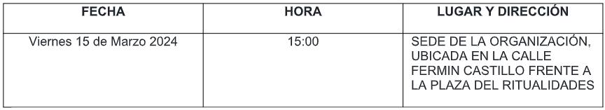 Fecha: LUNES 01 abril del 2024; Hora: 09H00, Lugar: Oficina situada en la calle Amazonas y Jimmy Anchico de la ciudad de Quinindé. La Junta General de Accionistas conocerá y adoptará las resoluciones pertinentes sobre los puntos del orden del día que se convoca.