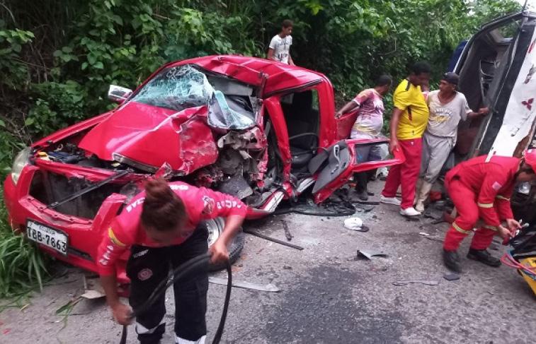 La tarde de ayer domingo, se produjo un terrible accidente de tránsito en la vía a Chigüe, cerca de Viche, en el cantón Esmeraldas. En el lugar, se evidenció el choque y posterior vuelco