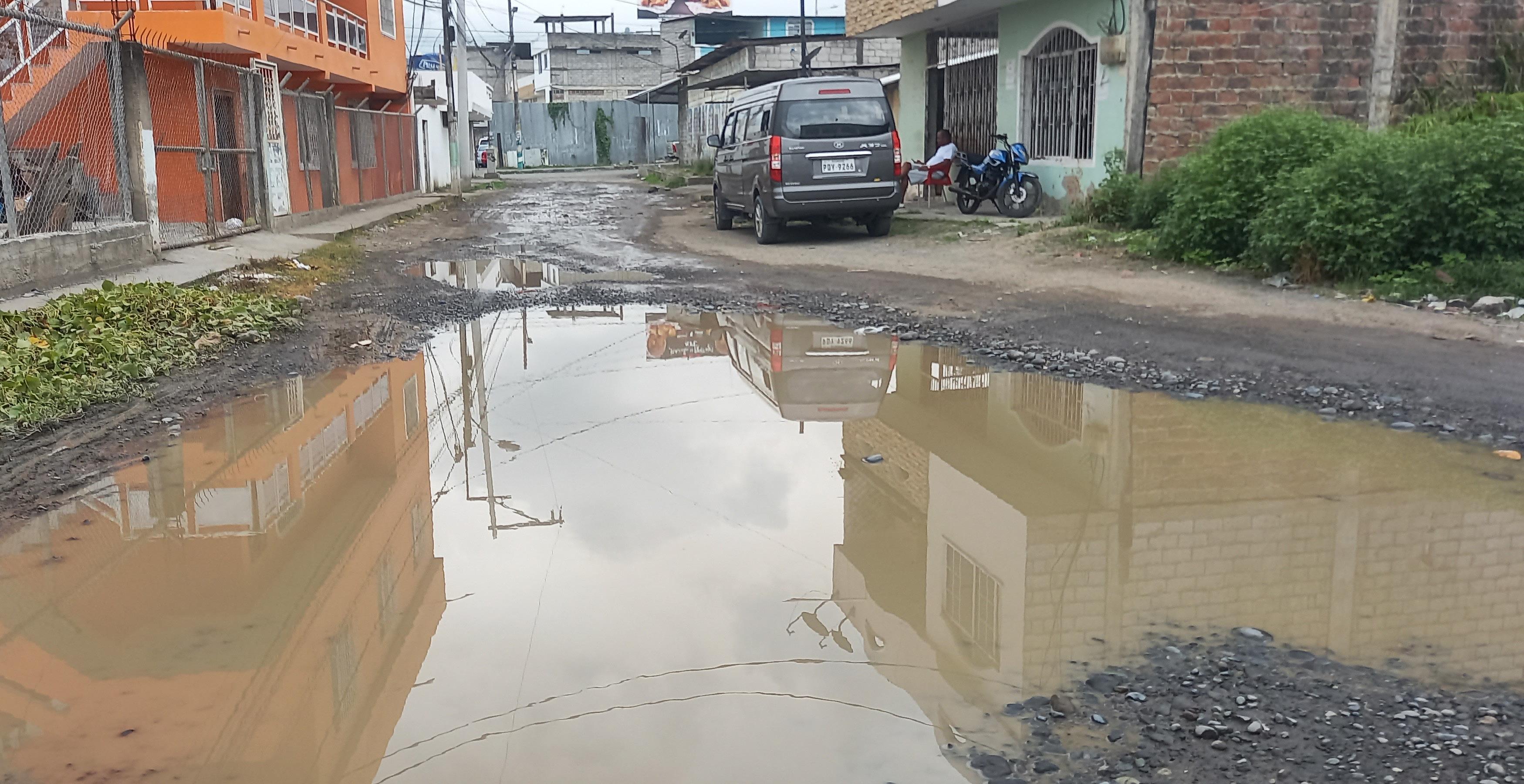 Varias calles del sector de la propicia 4 requieren un mantenimiento vial por los grandes huecos que tienen las calles los cuales se convierten en piscinas de agua