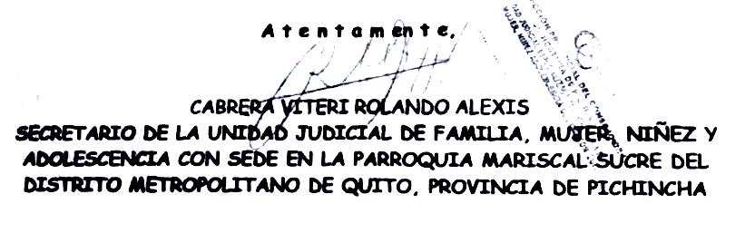 UNIDAD JUDICIAL DE FAMILIA, MUJER, NIÑEZ Y ADOLESCENCIA CON SEDE EN LA PARROQUIA MARISCAL SUCRE DEL DISTRITO METROPOLITANO DE QUITO, PROVINCIA DE PICHINCHA