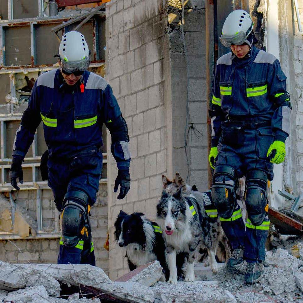 Entre los escombros de la ciudad mexicana de Querétaro resaltan las patas de Balam, Orly, Robinson y Rocky, cuatro perros de rescate que reciben entrenamiento de Édgar Martínez, guía canino de la Cruz