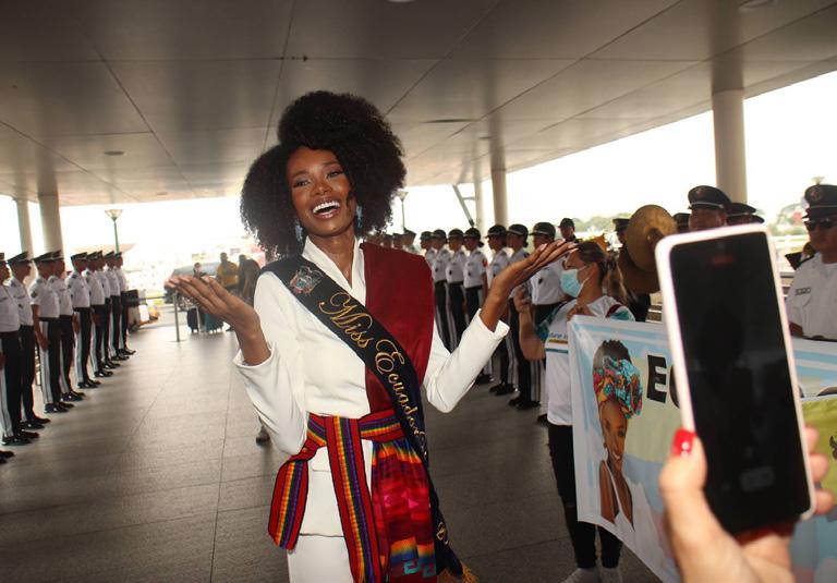 Nayelhi González, miss Ecuador 2022, se despidió en el aeropuerto José Joaquín de Olmedo, de Guayaquil antes de viajar a New Orleans, Estados Unidos, al certamen Miss Universo, evento a realizarse el próximo 14 de enero.