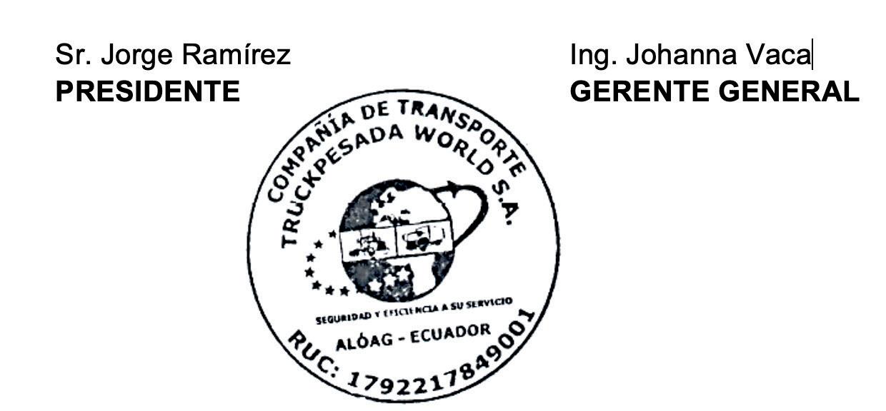 NOTA: Toda la documentación reposara en las oficinas de la compañía para su respectiva revisión.