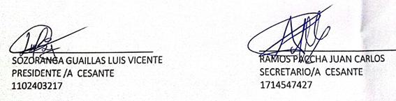 CANACUAN RIVERA JUAN CARLOS Presidente CRUZ BALSECA EDUARDO DANILO Secretario