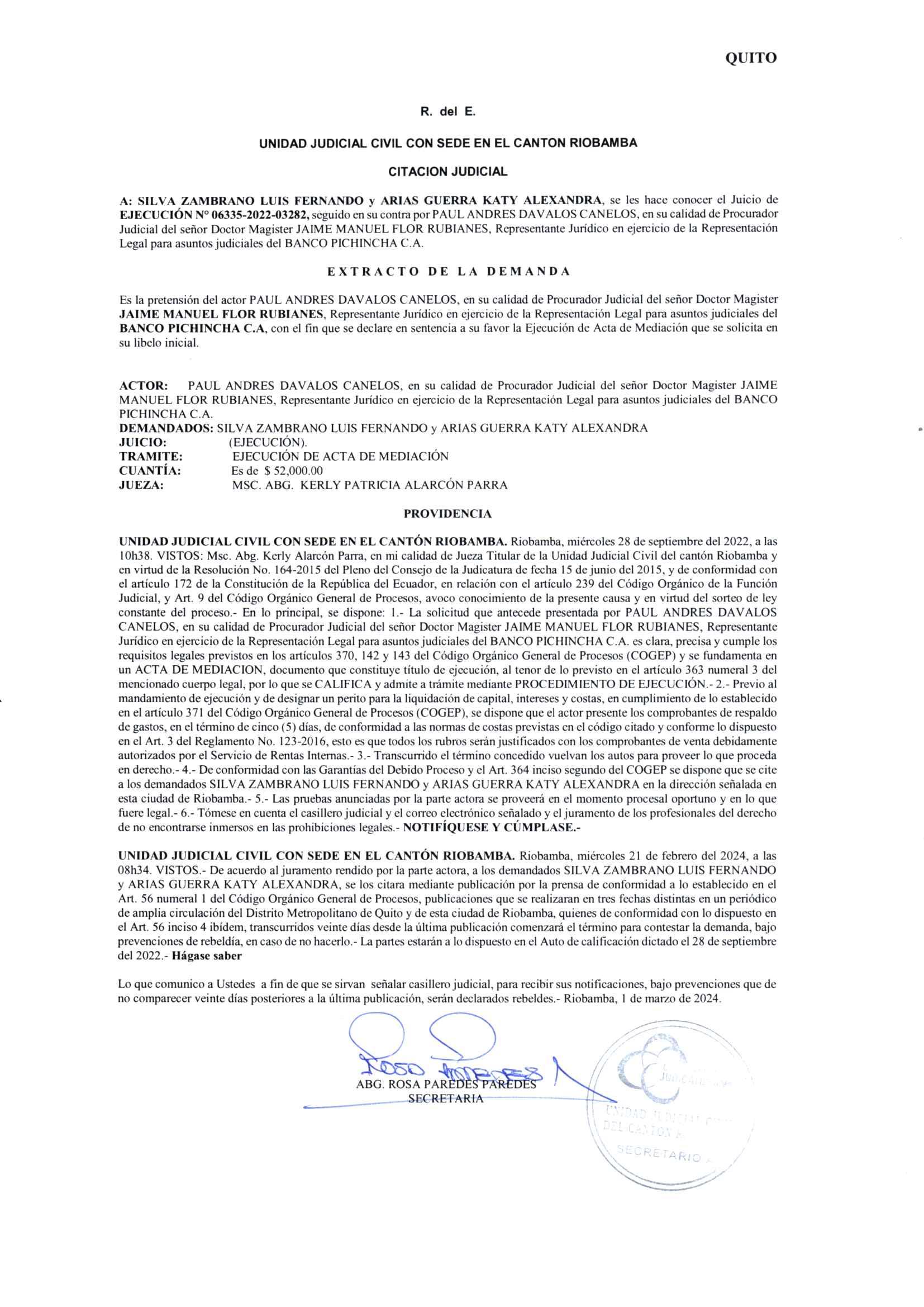 UNIDAD JUDICIAL CIVIL CON SEDE EN EL CANTON RIOBAMBA