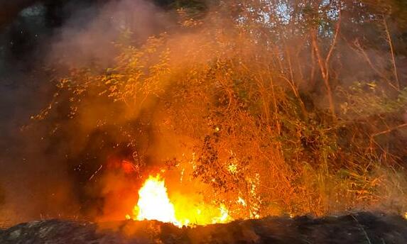 flagelo extendió su intensidad con el pasar de los minutos, consumiendo a su paso maleza, árboles y llegando peligrosamente a la calzada.