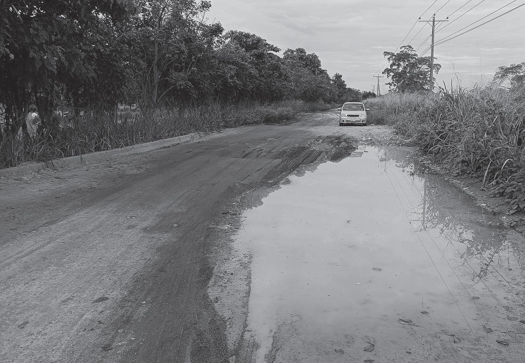 destruida, hay charcos de agua, los bordillos están cubiertos de maleza y el tránsito es difícil en esa ruta, amerita su intervención urgente.