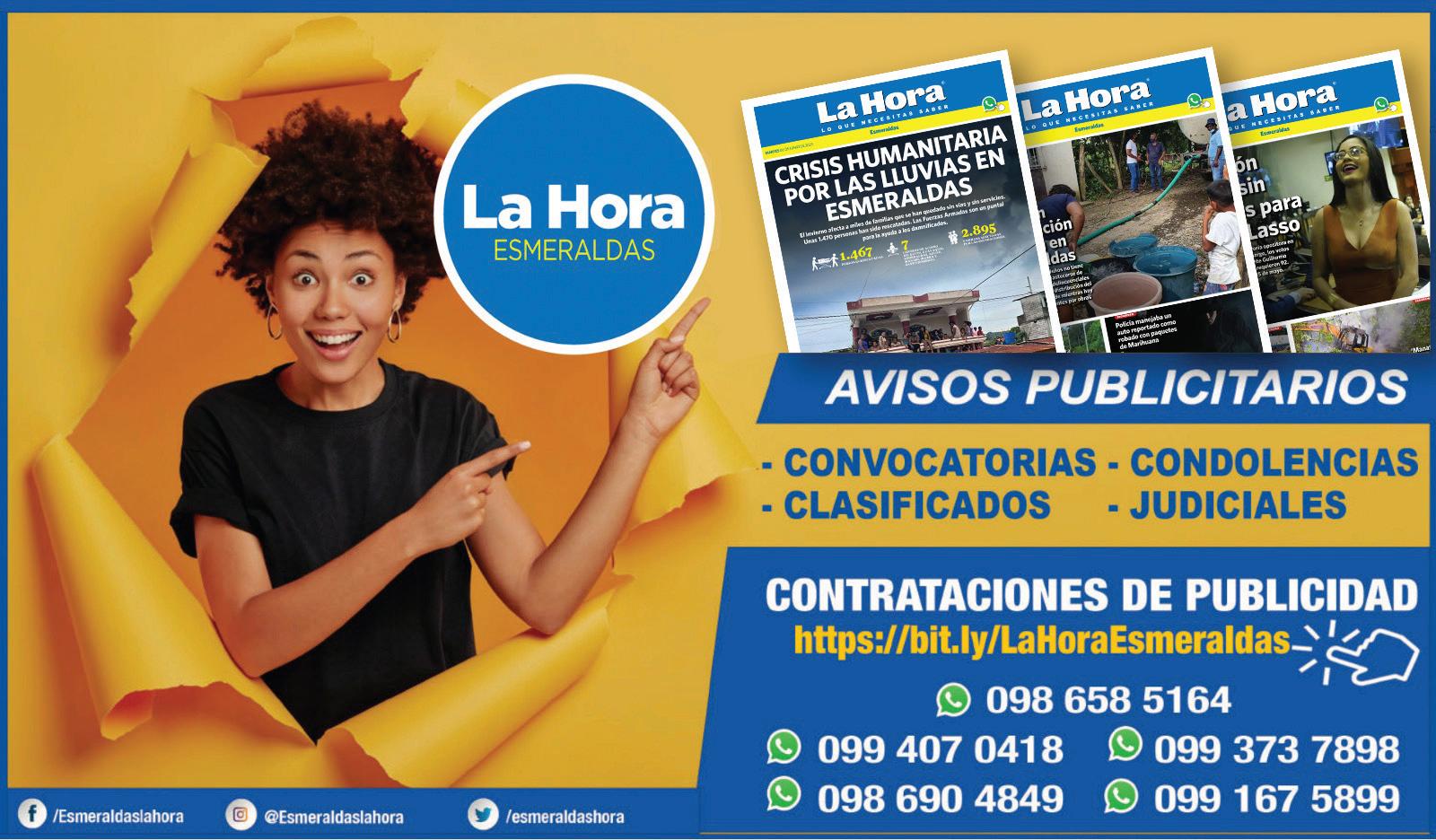 Medio de comunicación liberal, laico, agnóstico e inclusivo. Respetuoso y defensor de los Derechos Humanos, el Estado de Derecho y la Democracia. Directora Nacional Gabriela Vivanco Salvador Editor General: Jean Cano Editor Regional: Josué Navarrete Redacción: revistasemanal@lahora.com.ec Publicidad: fesmeraldas@lahora.com.ec Año: XXVIII No. 11778 Los escritos de los colaboradores solo comprometen a sus autores y no reflejan el pensamiento del medio, que se expresa en su Editorial. OPINIÓN 02 O ESMERALDAS LUNES 26/JUNIO/2023