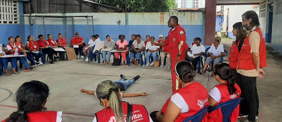 CAPACITACIÓN. Voluntarios de la Pastoral Social Cáritas Esmeraldas recibieron capacitaciones de temas de primeros auxilios, riesgos, incendios y demás.