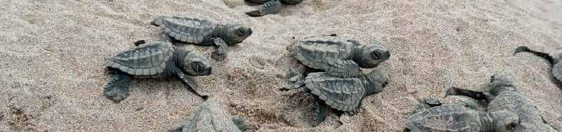 En las playas del ecuador se pueden encontrar 5 especie de tortugas que anidan en las playas de la costa ecuatoriana como son la Carey (se encuentran en peligro de extinción), la tortuga Laúd (en peligro de extinción), tortuga verde, la golfina y la tortuga caguama.