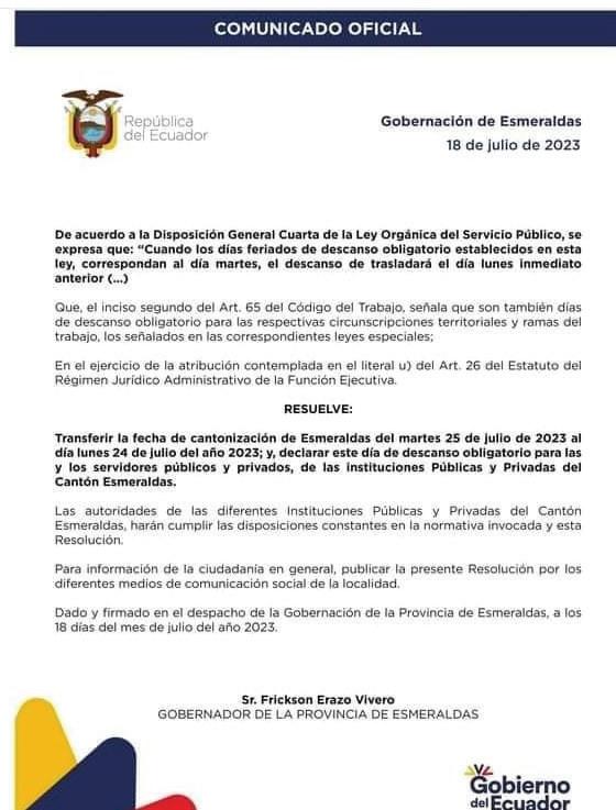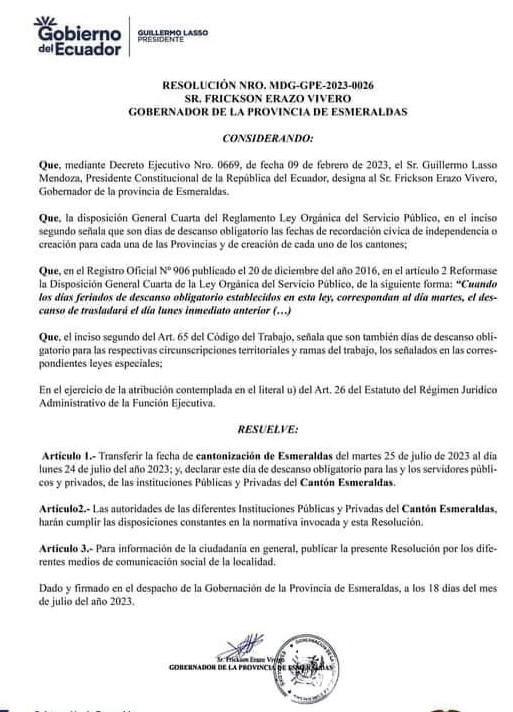 En el cantón Eloy Alfaro en la parroquia Valdés Limones, las 7 juntas receptoras del voto que se encontraban en la Unidad Educativa 16 de Octubre, antes llamada Escuela Simón Bolívar N°26, se trasladarán al Coliseo Elías Lugo Ibarra.