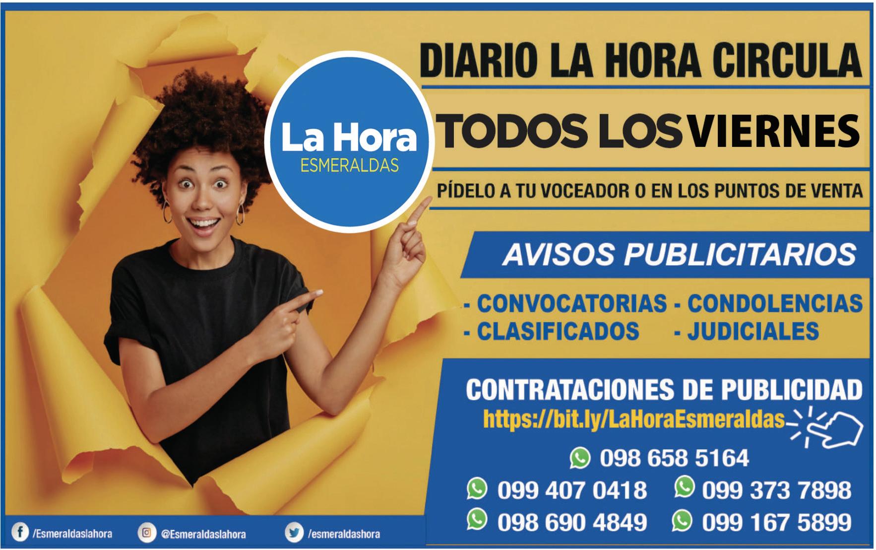 Publicidad: fesmeraldas@lahora.com.ec