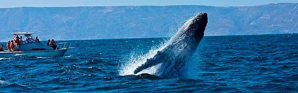 Se podrá observar a las ballenas, incluso a sus crías llamados ballenatos, los machos dan magníficos saltos para cortejar a las hembras.