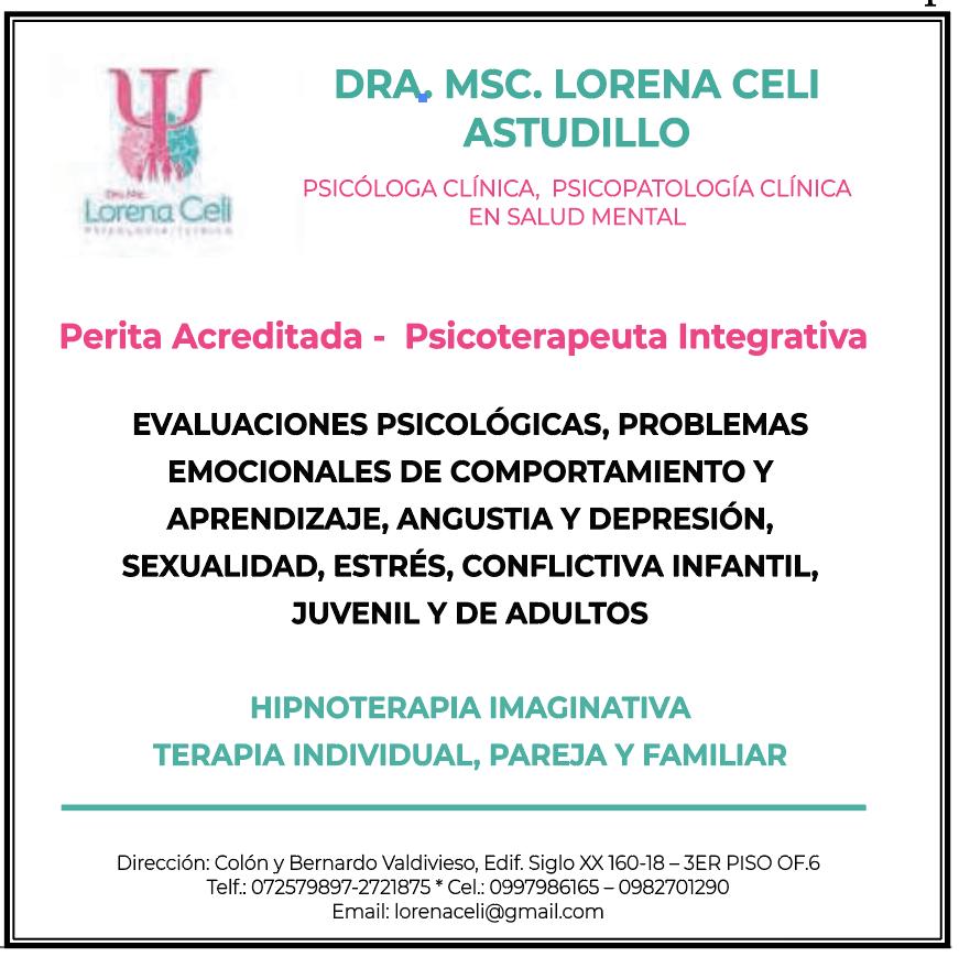 Directora Nacional Gabriela Vivanco Salvador Editor General: Jean Cano Editora Regional: Mishelle Calva Jiménez Publicidad: loja@lahora.com.ec