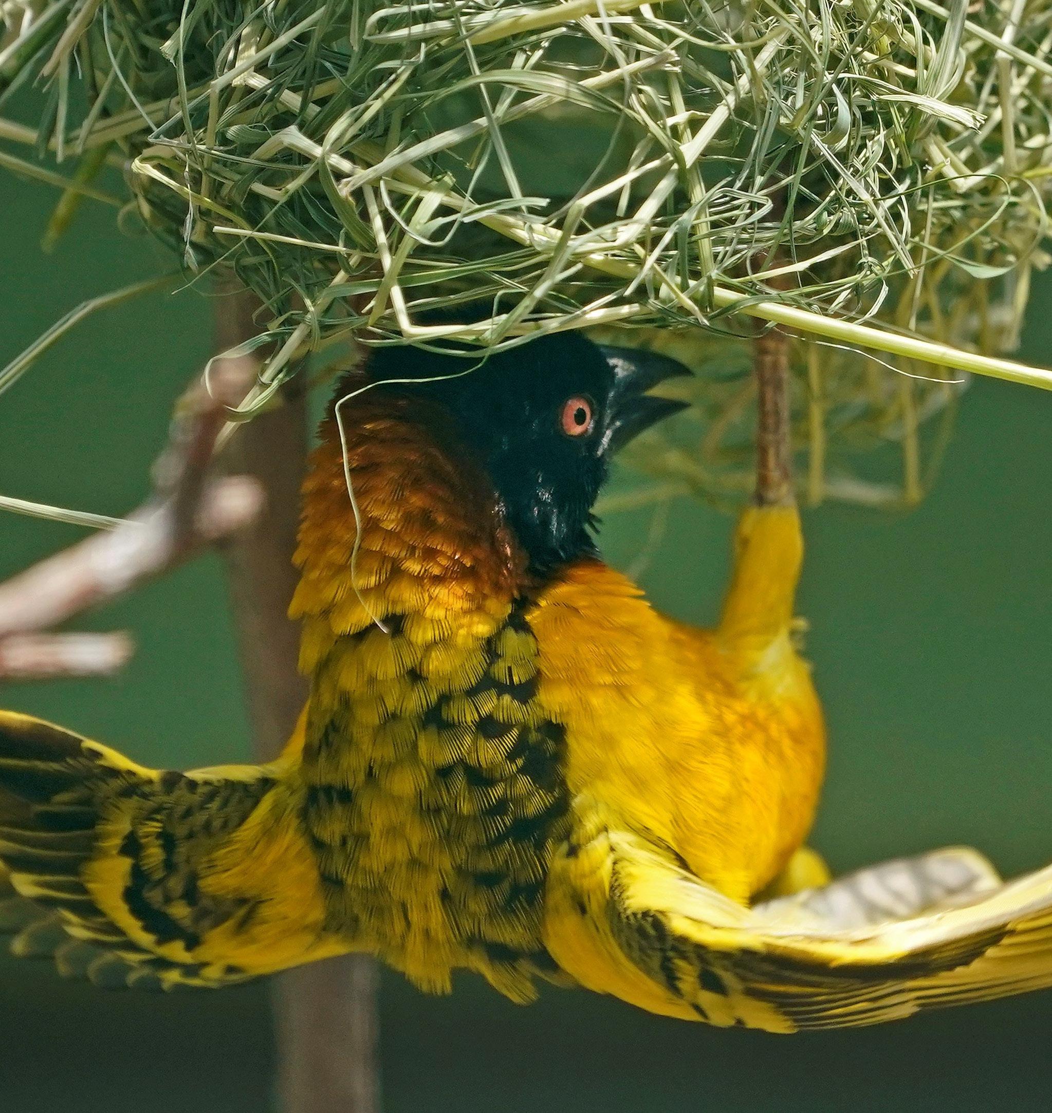 Un estudio internacional revela que los nidos de las aves europeas actúan como reservorio para el Arsenophonus nasoniae, una bacteria que puede usarse para entender los efectos de la crisis climática en insectos. En la imagen, un ave tejedora de cabeza negra prepara su nido cerca de Heidelberg (Alemania). EFE